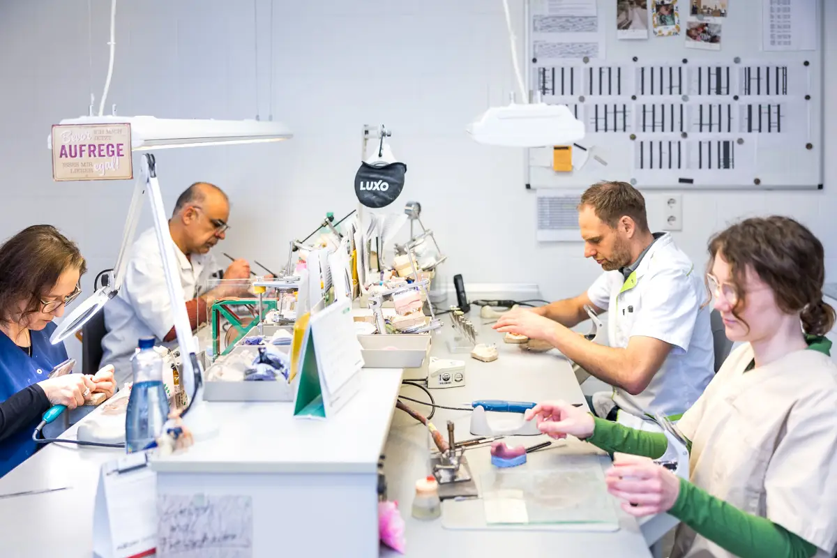 Wir arbeiten präzise, mit Leidenschaft für Qualität und einem echten Teamgeist. Was uns verbindet, ist der respektvolle und offene Umgang miteinander – ob im Labor oder in der Zusammenarbeit mit Zahnärzten.